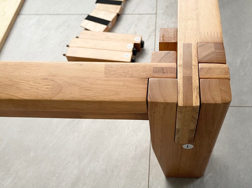 - 組立て最後に取りつける「ホゾ組」部材のおかげで、フレームがしっかりしていて“静か”(ヘッドボードなしタイプのみ)